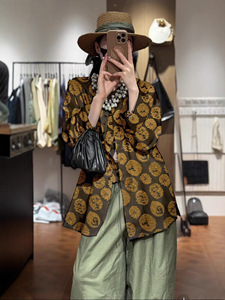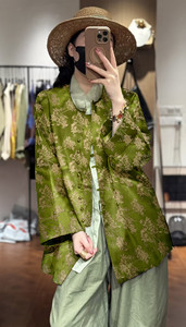 南油秋季新中式独特提花复古上衣温柔精致圆领简约大气唐装外套女