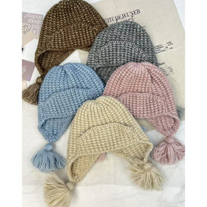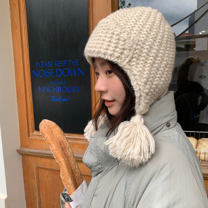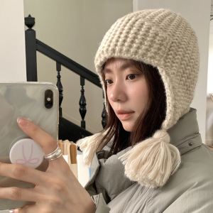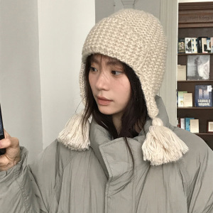 新韩系小辫流苏护耳针织帽女秋冬季保暖百搭毛线帽甜美冷帽雷锋帽