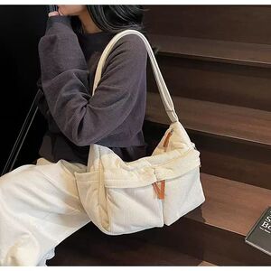 帆布包日韩系慵懒风邮差包潮流腋下包时尚手提包秋冬季棉服菱格羽绒包女