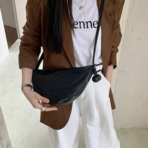 头层植鞣牛皮饺子包包女2025秋冬新款复古真皮单肩腋下休闲斜挎包