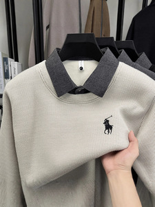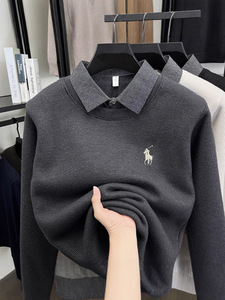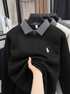 重磅卫衣男假两件2025秋季新款时尚休闲刺绣衬衫领长袖男士打底衫