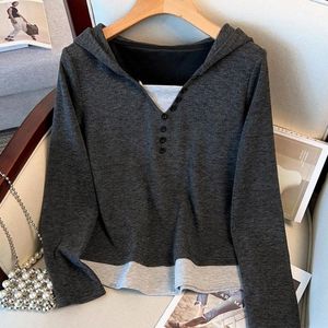 山力达迪假两件连帽上衣阔腿裤两件套春秋大码显瘦洋气网红休闲运