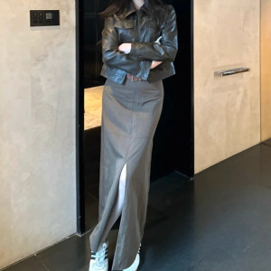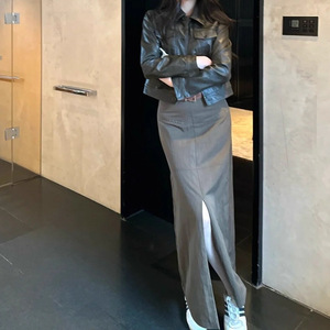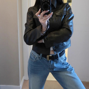 秋季2025新款复古气质感超好看上衣法式名媛黑咖色短款皮衣外套女