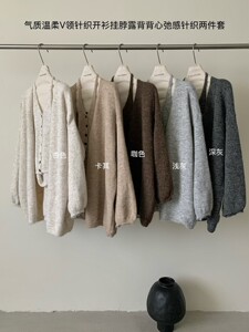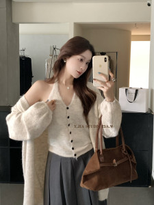 Y.JIA 伊嘉 秋季时髦温柔V领针织开衫+辣妹挂脖背心两件套装女725