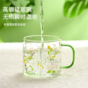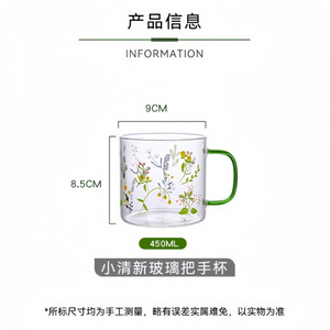 小清新玻璃杯耐高温果汁牛奶杯高颜值喝水杯2025带把水杯套装礼品