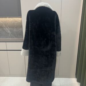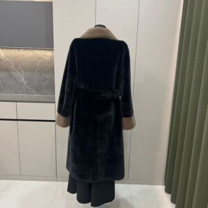 跨境2025新款仿皮草水貂毛皮毛一体长款腰带显瘦外套气质大衣拼色