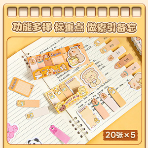 卡皮巴拉排排坐便利贴办公记事索引贴学生文具高颜值造型便利贴