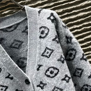 L25秋冬新款慵懒感软糯舒适满提花字母水貂绒中长开衫