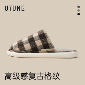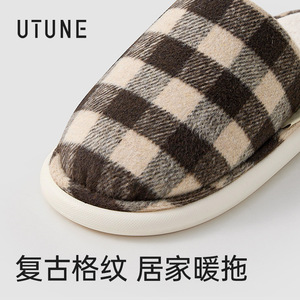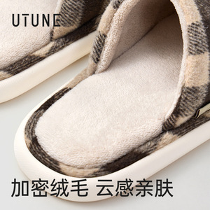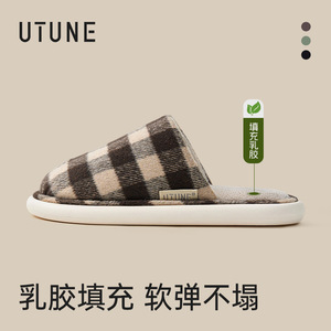 优调高级感乳胶格子棉拖鞋女冬季保暖家居室内情侣软底静音防滑男