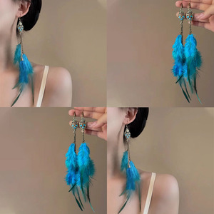 镶钻镂空羽毛流苏耳环女超仙甜美温柔百搭耳钩小众高级感耳饰批发