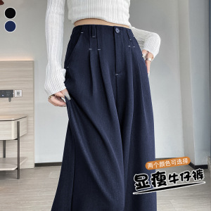 2025秋新款牛仔蓝高腰阔腿裤女宽松显瘦直筒垂感休闲拖地裤A6953
