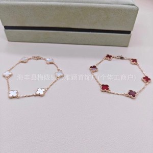 高版本mini四叶草红玛瑙六花手链女名媛高级感小众对版现货厂批发