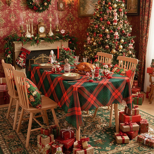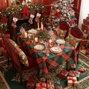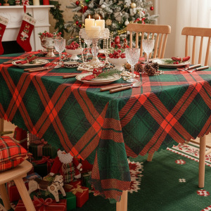新款美式桌布圣诞主题餐桌布圣诞台布节日装饰成品格子印花跨境