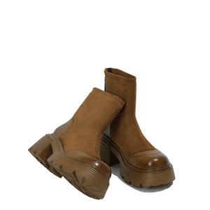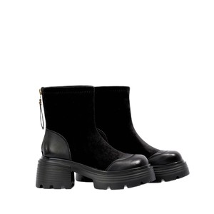 2025秋冬新款复古马丁靴英伦风小个子厚底粗跟拼接百搭小个子短靴