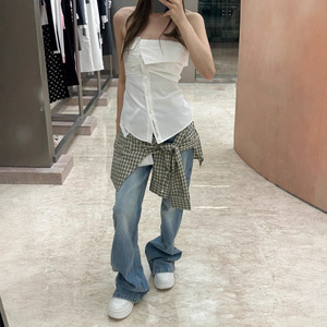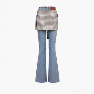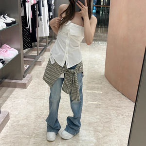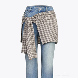 25/早秋新款衬衫绑带两件式微喇牛仔裤女