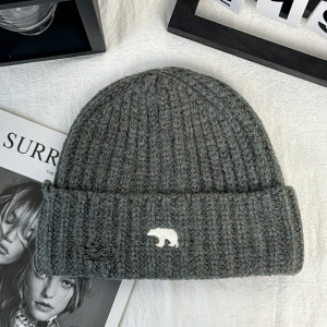 秋冬新款北极熊破洞毛线帽子女大头围针织帽保暖护耳套头冷帽男潮