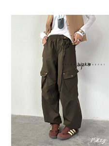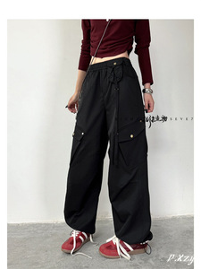 005女士2025秋季新款卫裤 高级感松紧腰垂感阔腿长裤女运动休闲裤