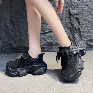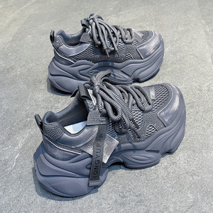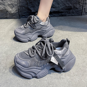 老爹鞋女松糕厚底内增高网面透气女鞋子2025新秋夏季小个子运动鞋