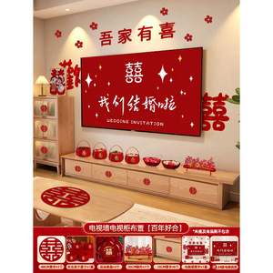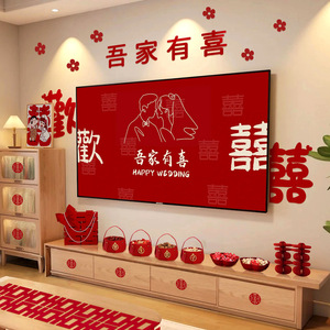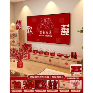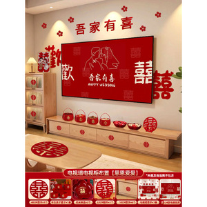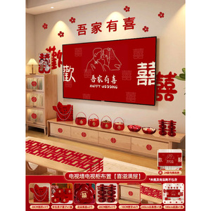 结婚电视背景墙布置婚房装饰套装全套客厅喜字摆件男女方用品大全