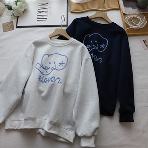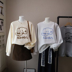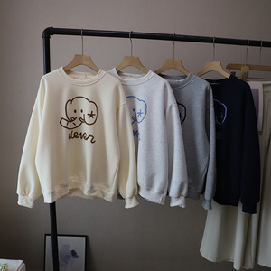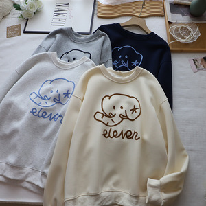 [比正]2025秋冬新款韩版时尚好看圆领卡通刺绣宽松休闲卫衣女5037