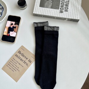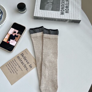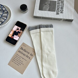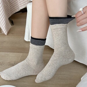 无骨袜子女士秋冬季新品日系撞色条纹中筒袜百搭双罗口纯棉堆堆袜
