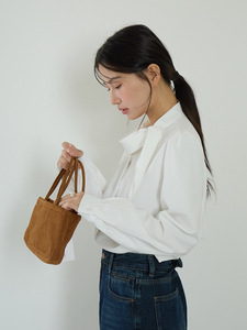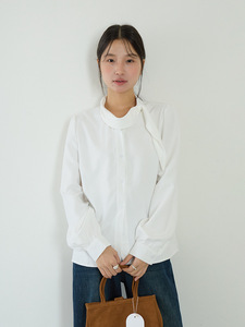 【欧凡】法式气质绒感小众围巾领白色长袖衬衫女秋季显瘦衬衣3194