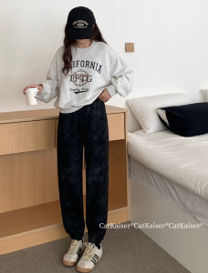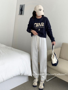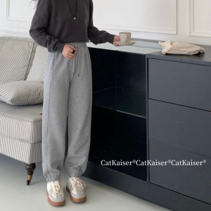CatKaiser®素色束脚卫裤松紧腰抽绳宽松休闲显瘦百搭长裤女秋款