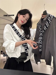 【高品质订货】韩版简约雾面绒感休闲宽松百搭口袋衬衫(配披肩)