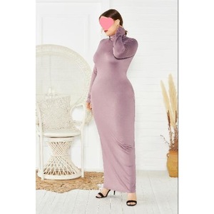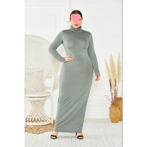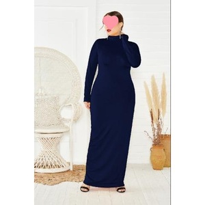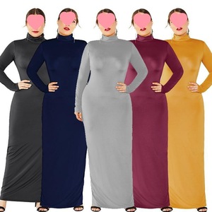 时尚秋季保守高领长袖女装年轻加大码宴会简约纯色修身提臀连衣裙