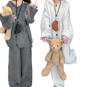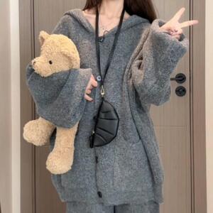 【早秋套装】2025复古慵懒宽松连帽新款简约休闲两件套秋冬套装