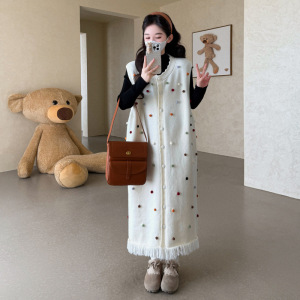 孕妇秋季时尚百搭打底毛衣宽松流苏毛衣背心裙甜美显瘦孕妇两件套