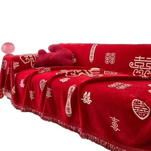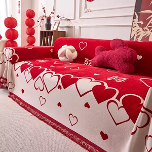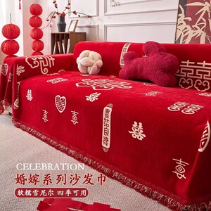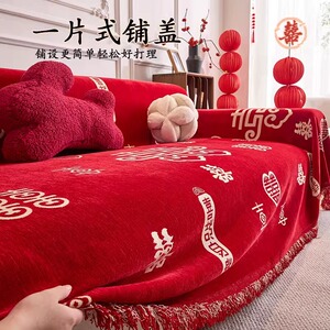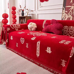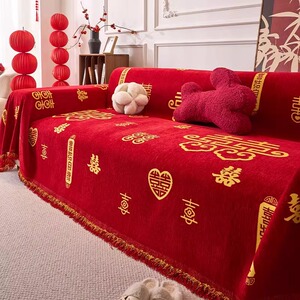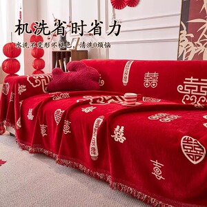 高级红色喜庆防滑防尘盖巾2025新款四季通用结婚装饰全包沙发巾