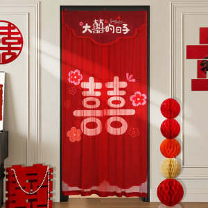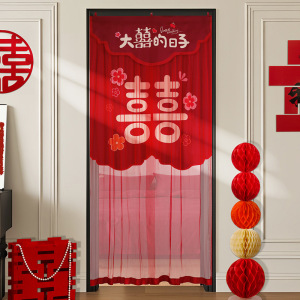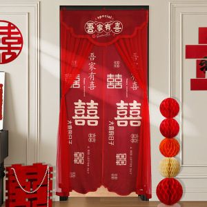 结婚红色门帘免打孔刺绣流苏门帘装饰婚房卧室布置婚庆用品大全