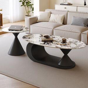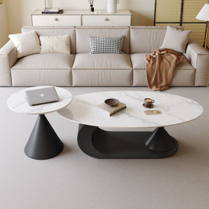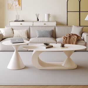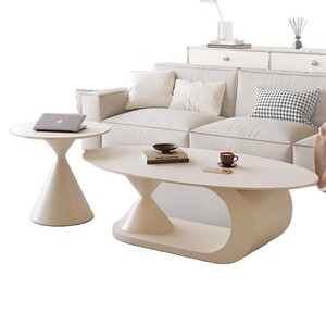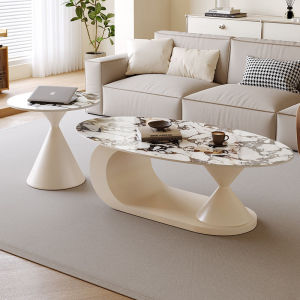 奶油极简风岩板茶几椭圆形家用客厅小户型设计师新款茶几边几组合