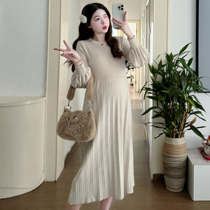 实拍现货~2024秋冬法式圆领宽松减龄针织孕妇加厚百褶打底内搭裙