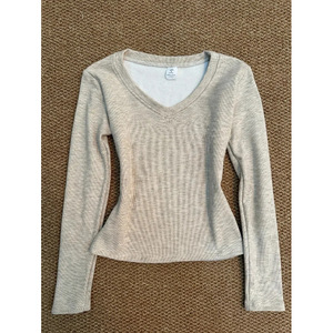 奶花灰V领长袖【修身收腰】 (优质T恤面料)