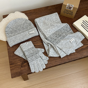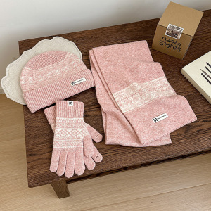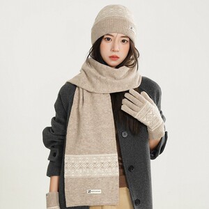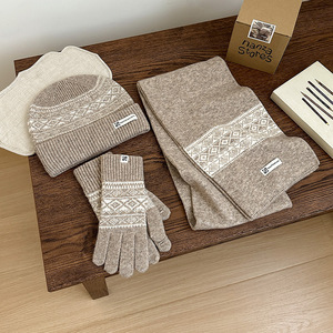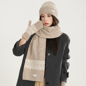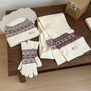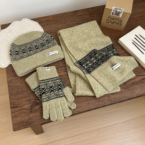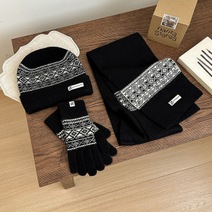 民族风围巾女秋冬新款中长围脖帽子保暖针织手套情侣围巾套装
