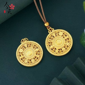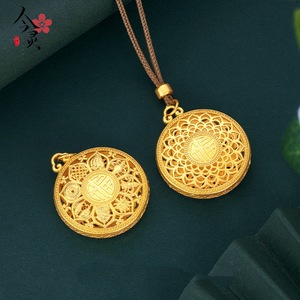 小红书抖音直播款新中式民族风花丝镂空点钻八宝罗盘吊坠编绳项链