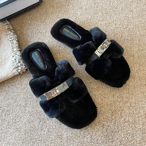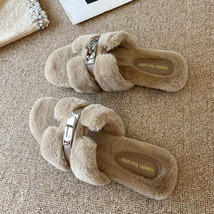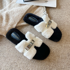 666-8韩版小金扣外穿毛毛鞋女秋冬2025新款加厚加绒毛毛拖鞋棉鞋