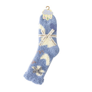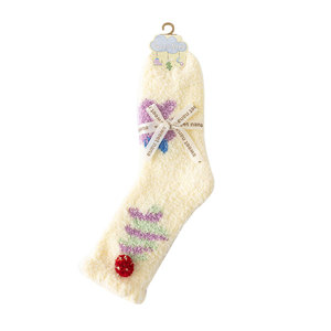 珊瑚绒袜子女中筒袜秋冬季加绒加厚保暖地板袜居家睡眠月子袜暖脚