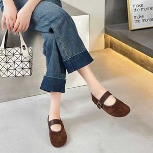 玛丽珍鞋女2025秋季新款磨砂羊皮浅口单鞋真皮软底一字带小皮鞋