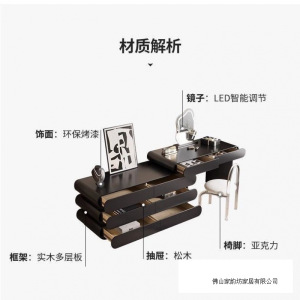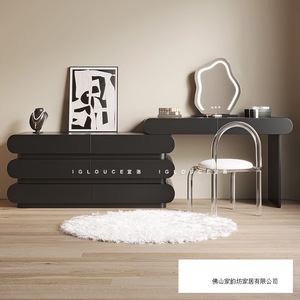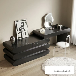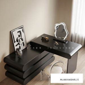 现代简约黑色梳妆台化妆桌斗柜一体家用全实木大小户型卧室高级桌