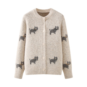 实拍2025秋季新款韩版宽松软糯卡通小狗毛衣外套女百搭减龄针织衫
