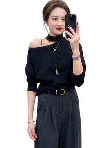 春秋冬新款气质露肩设计感长袖T恤女装小众洋气减龄显瘦百搭上衣