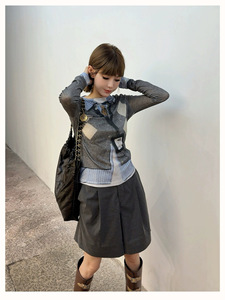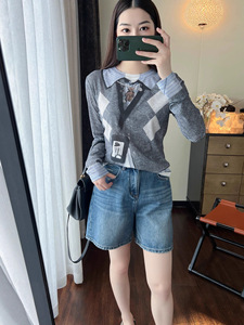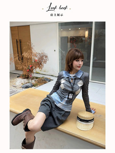 ASBR设计师买手店 元C~假两件打底衫25秋新款趣味3D印花工牌菱格