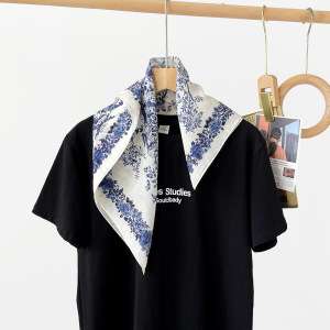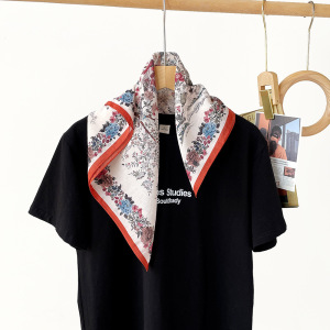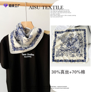 棉真丝方巾春秋季新款植物花卉真丝丝巾女通勤出行优雅百搭小方巾