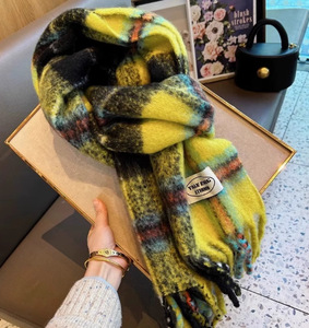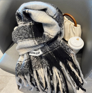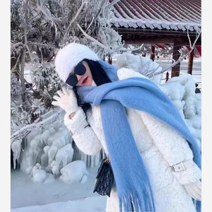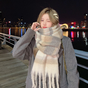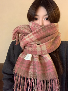 马海毛加厚条纹围巾女冬季韩系ins风美拉德流苏披肩时尚情侣围脖
