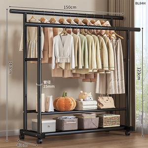 【双杆丨特粗25管】150CM黑带轮丨双倍挂衣