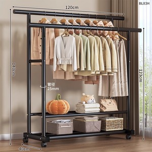 【双杆丨特粗25管】120CM黑带轮丨双倍挂衣
