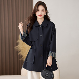 中长款纯色翻领休闲风衣外套2025新款秋季时尚单排扣气质女装大衣